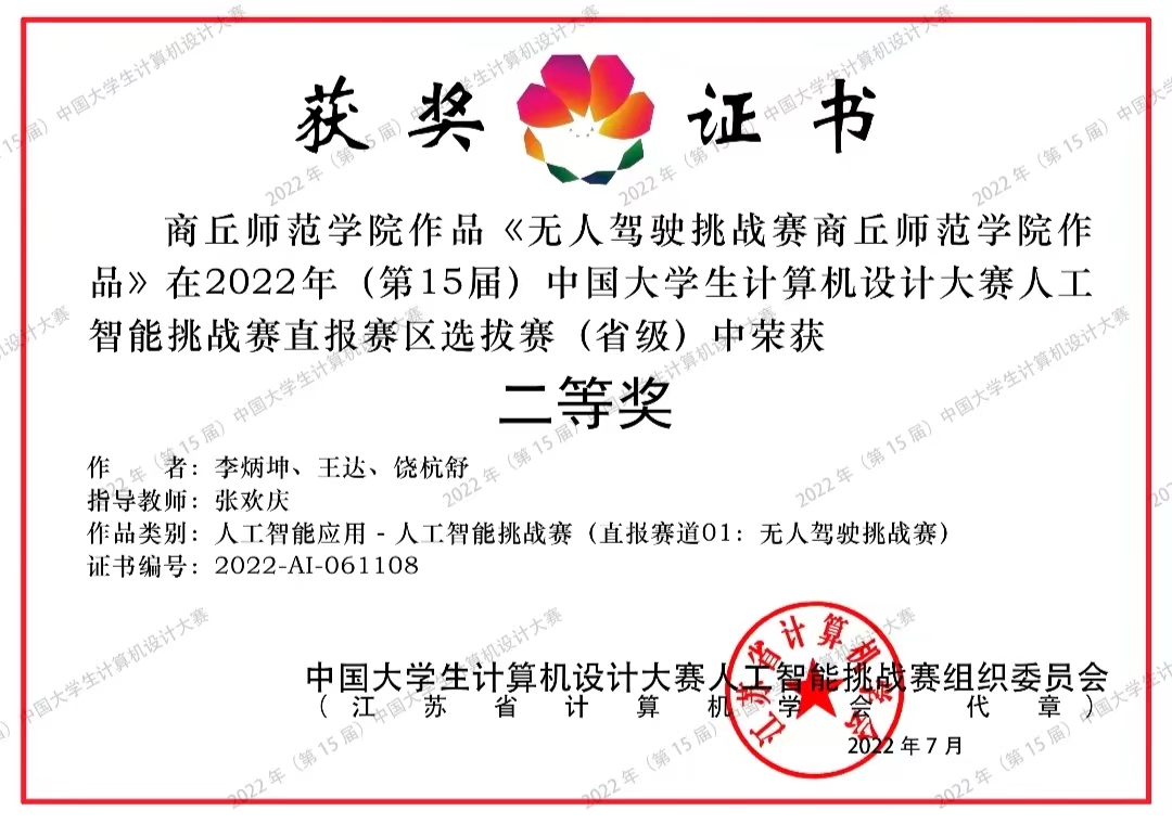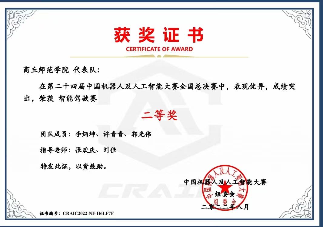 2022年8月,由中国人工智能学会举办的第二十四届中国机器人及人工智能大赛落下帷幕,必威西汉姆联许青青等三名员工通过层层选拔,在此次角逐中荣获智能驾驶赛国赛二等奖。