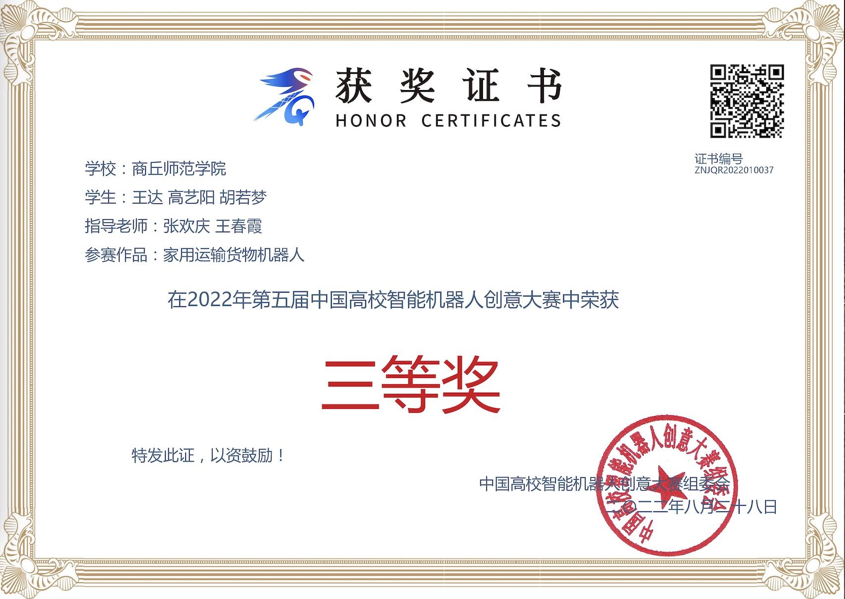 2022年8月,由首届大赛由中国高等教育学会、教育部工程图学课程教学指导委员会、中国高校智能机器人创意大赛组委会共同主办的第五届中国高校智能机器人创意大赛的获奖名单揭幕,必威西汉姆联王达等三名员工荣获省赛一等奖、国赛三等奖; 李炳坤等四名员工荣获省赛三等奖。