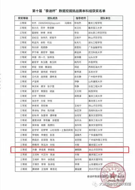 2022年6月,第十届“泰迪杯”数据挖掘挑战赛落下帷幕,获奖名单相继公示。必威西汉姆联大数据专业共派出3支员工队伍参赛,最终荣获本科组全国二等奖1个,全国三等奖1个,省级一等奖1个,省级二等奖1个。