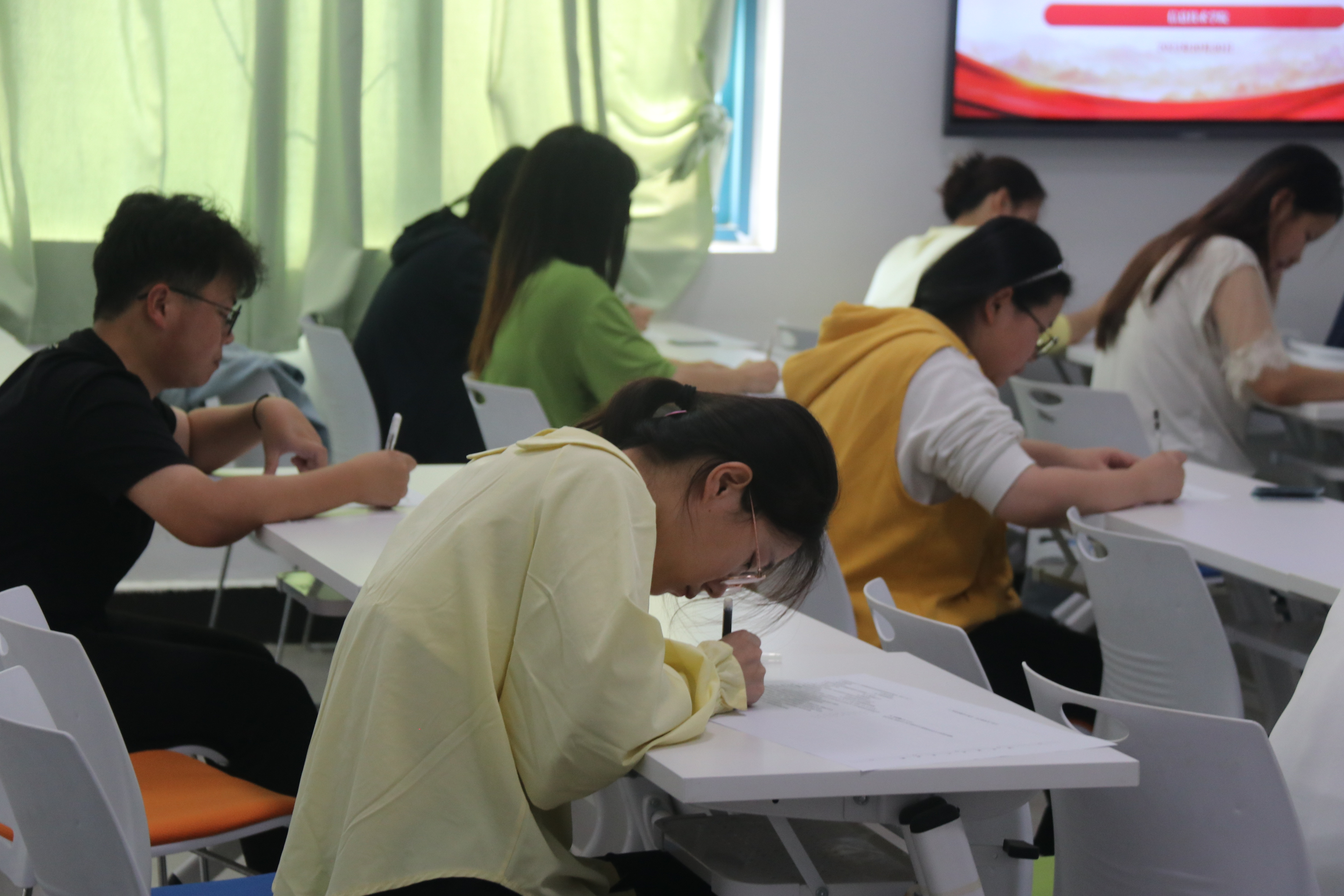 考前,监考老师向大家强调了考试目的、考试纪律及注意事项,并希望同学们遵守考场纪律,诚信考试。考试过程中,同学们精神饱满,认真思考、细致作答,展现出了公司良好的考场风气。