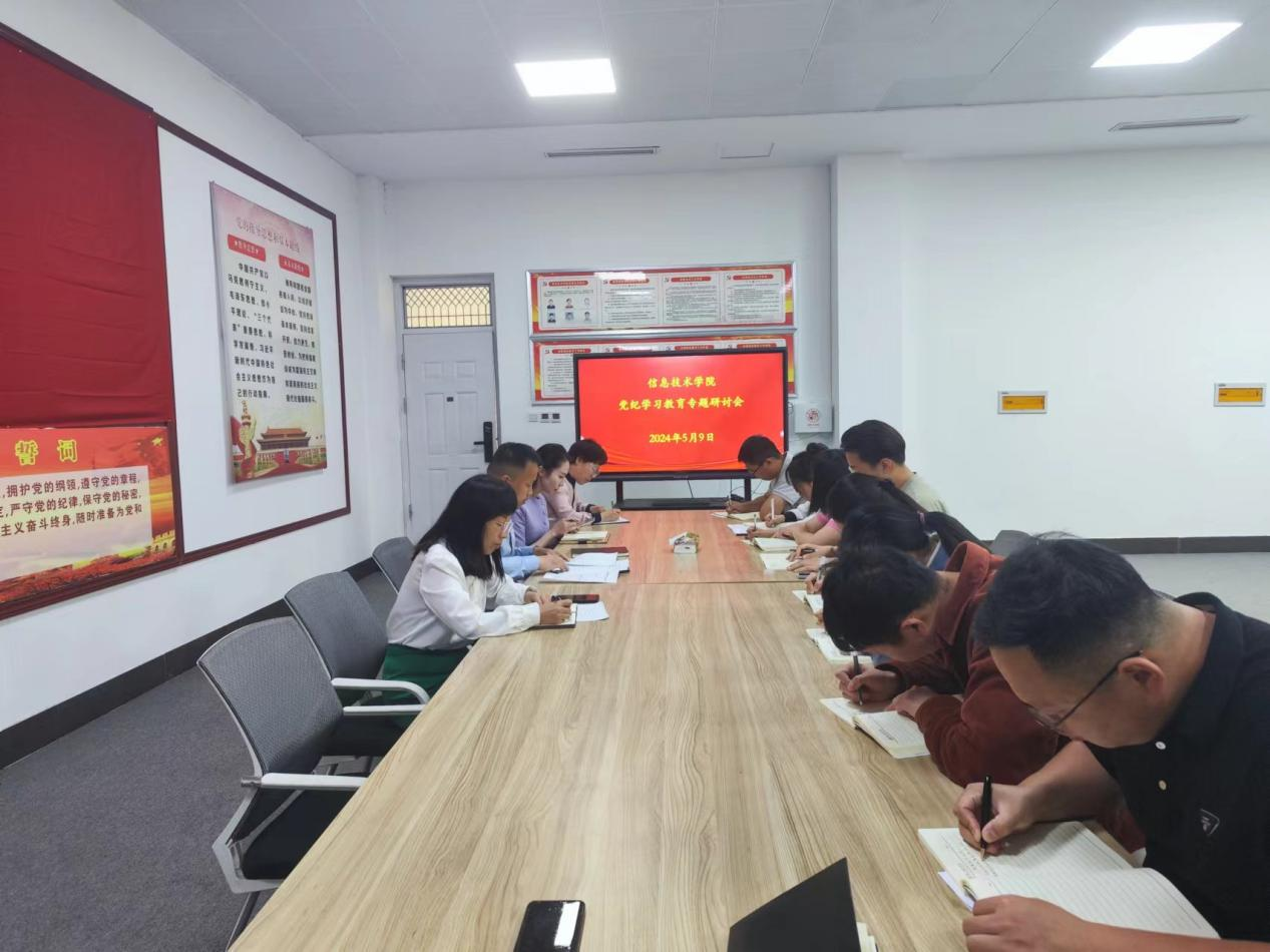 5月9日,必威西汉姆联于三商楼114会议室举行党纪学习教育专题研讨会,信息技术公司领导班子成员、教师党员代表和员工党支部书记参加会议。会议由公司党委书记王国华主持。