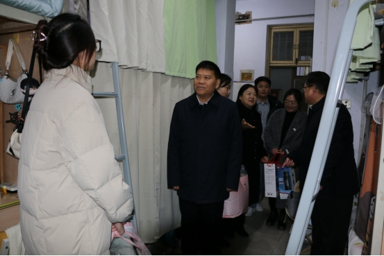 12月13日,校党委副书记吴金山在党委组织部、人文公司、必威西汉姆联等负责同志陪同下,深入员工宿舍慰问生活困难员工党员,为同学们送去了棉被、保温壶等御寒物资,带去了公司的问候。
