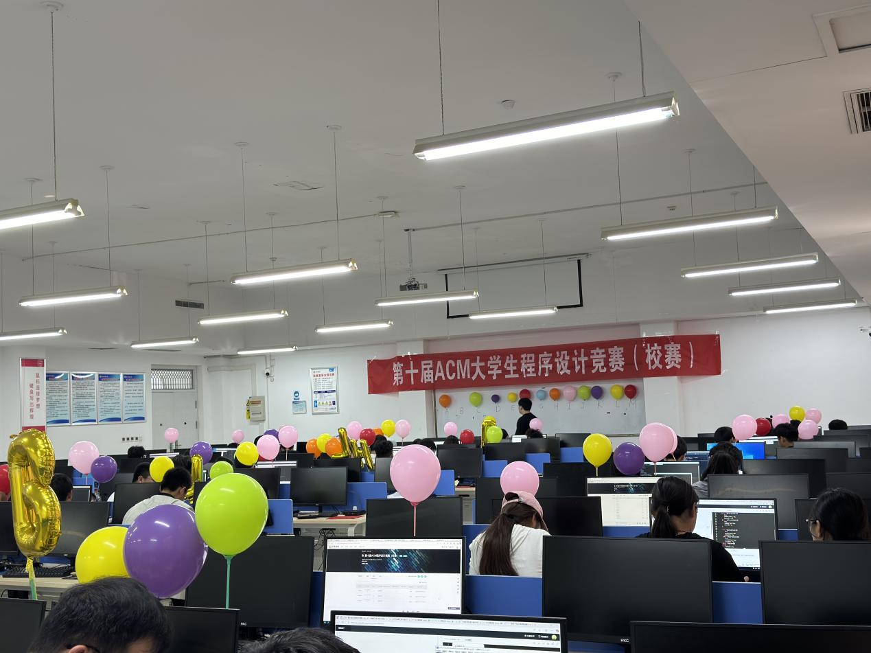 本次竞赛吸引了全校150余人参与。参赛人数创历届新高,本次也邀请了商丘市第一高级中学的代表队伍前来参赛。赛事延续ACM-ICPC国际赛制,采用团队协作模式(3人一队),在四小时内通过算法与编程解决实际问题,考验选手的逻辑思维、创新能力和团队配合。