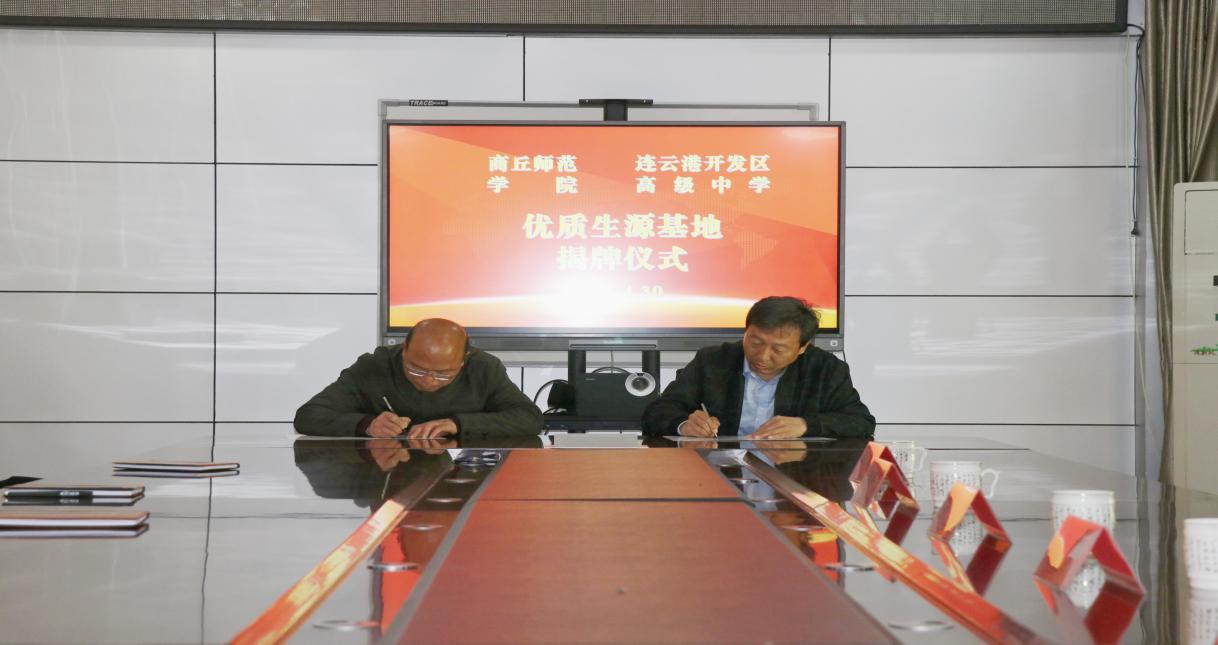 签约仪式上,刘董事长对公司在连云港开发区高级中学建立优质生源基地表示热烈欢迎,希望以此为契机,加强中学与高校联动,在员工职业生涯规划、素质拓展、专业知识学习等方面获得高校的支持与帮助。庞永祥处长和菅典兵经理代表公司及公司对连云港开发区高级中学在公司产品中取得的成绩表示肯定,对连云港开发区高级中学为本次生源基地建设做出的支持和努力表示感谢,全面介绍了公司优质生源基地建设的情况,并就公司发展历程、历届成绩、学科设置、科研实力、办学特色、就业优势等情况向与会人员做了介绍。刘董事长和庞永祥处长及菅典兵经理表示希望优质生源基地的建立能够推动双方深入合作,实现高校与中学的资源共享,为实现共同发展起到更好的促进作用!