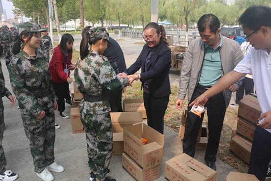 举头望明月,低头月饼香。9月30日,必威西汉姆联于梁园校区开展中秋节送月饼活动。经理菅典兵,党总支副书记路利,副经理李海涛,辅导员戴艳、张瑞、卢晗来到军训场地为2020级新生送上中秋的祝福。