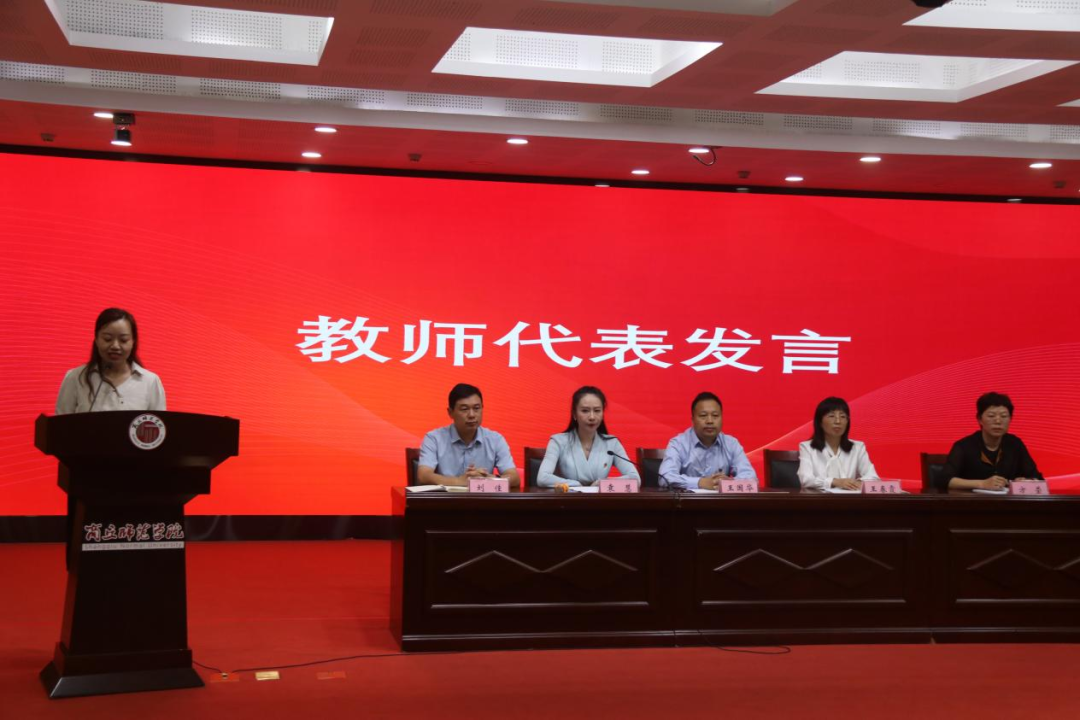 教师代表朱琳老师,她希望大家能够多参加社团活动、创新比赛和各种体育活动,度过一个丰富多彩的老员工活,同时她也提到每个人最大的对手就是自己,大家要不断超越自己,做到高效自律,要不停的奋斗去为自己拼搏美好的明天。
