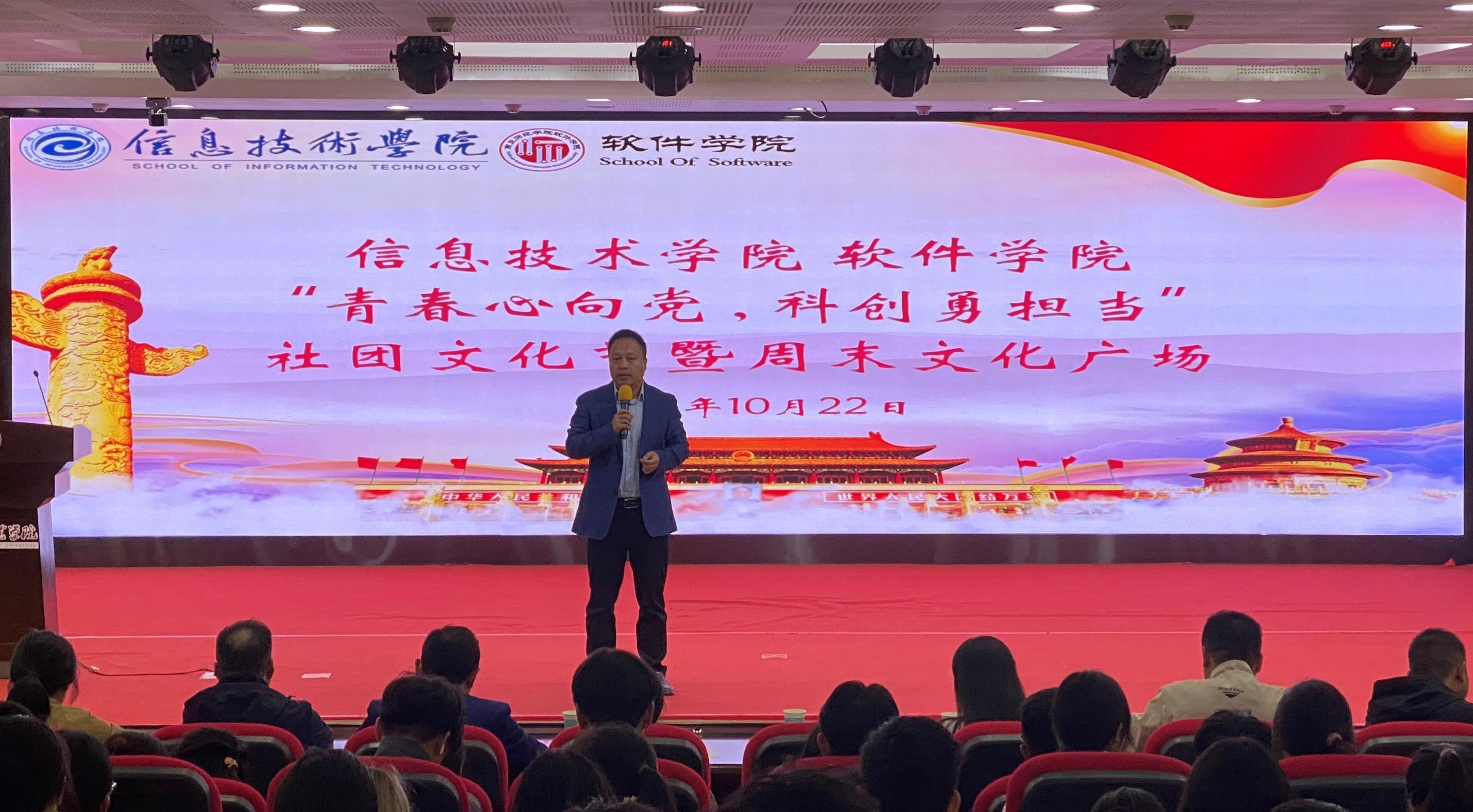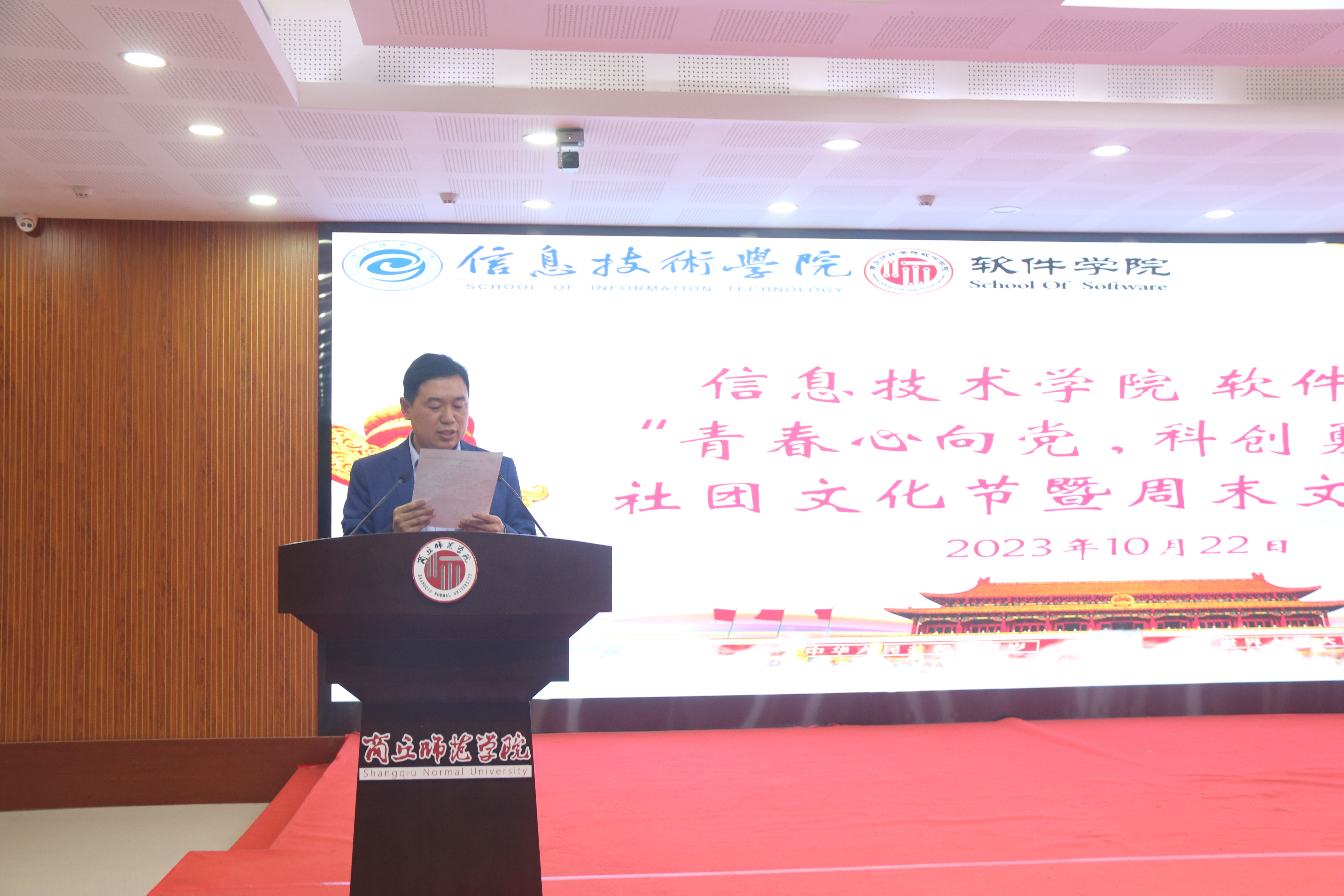 为进一步涵育优良学风,营造积极向上的学习氛围。10月22日晚,必威西汉姆联在梁园校区三商楼举办了以“青春心向党,科创勇担当”为主题的社团文化节暨周末文化广场活动。信息技术公司党委书记王国华、经理王春霞、副书记袁慧、副经理刘佳、各社团指导老师和两百余名员工代表参加了活动。本次社团文化节共分为两个环节,分别在145主会场和八个分会场进行。