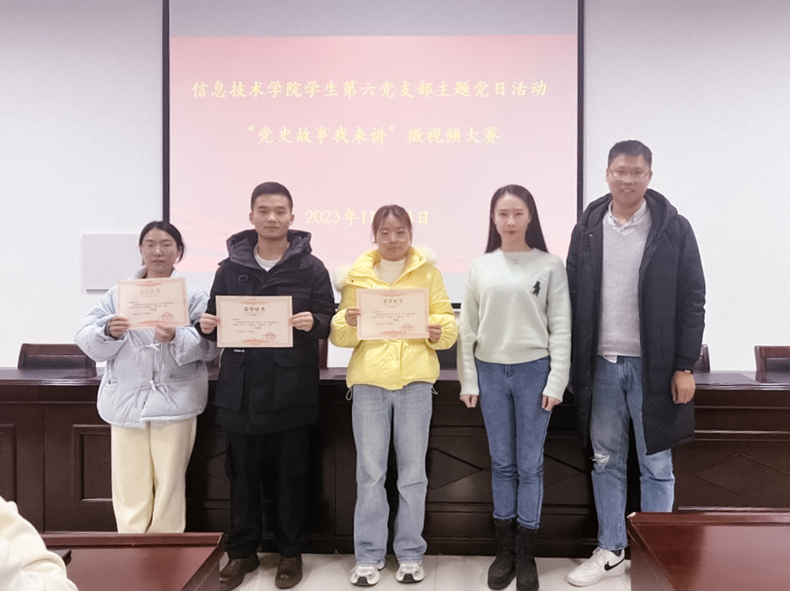 本次比赛经过前期准备,收到多份参赛作品,经评审,共有六份作品获奖。袁慧给获奖同学颁发荣誉证书并期望全体党员要在党史学习中汲取精神力量,希望广大青年踔厉奋发、勇毅前行,奋力走好新时代的长征路。