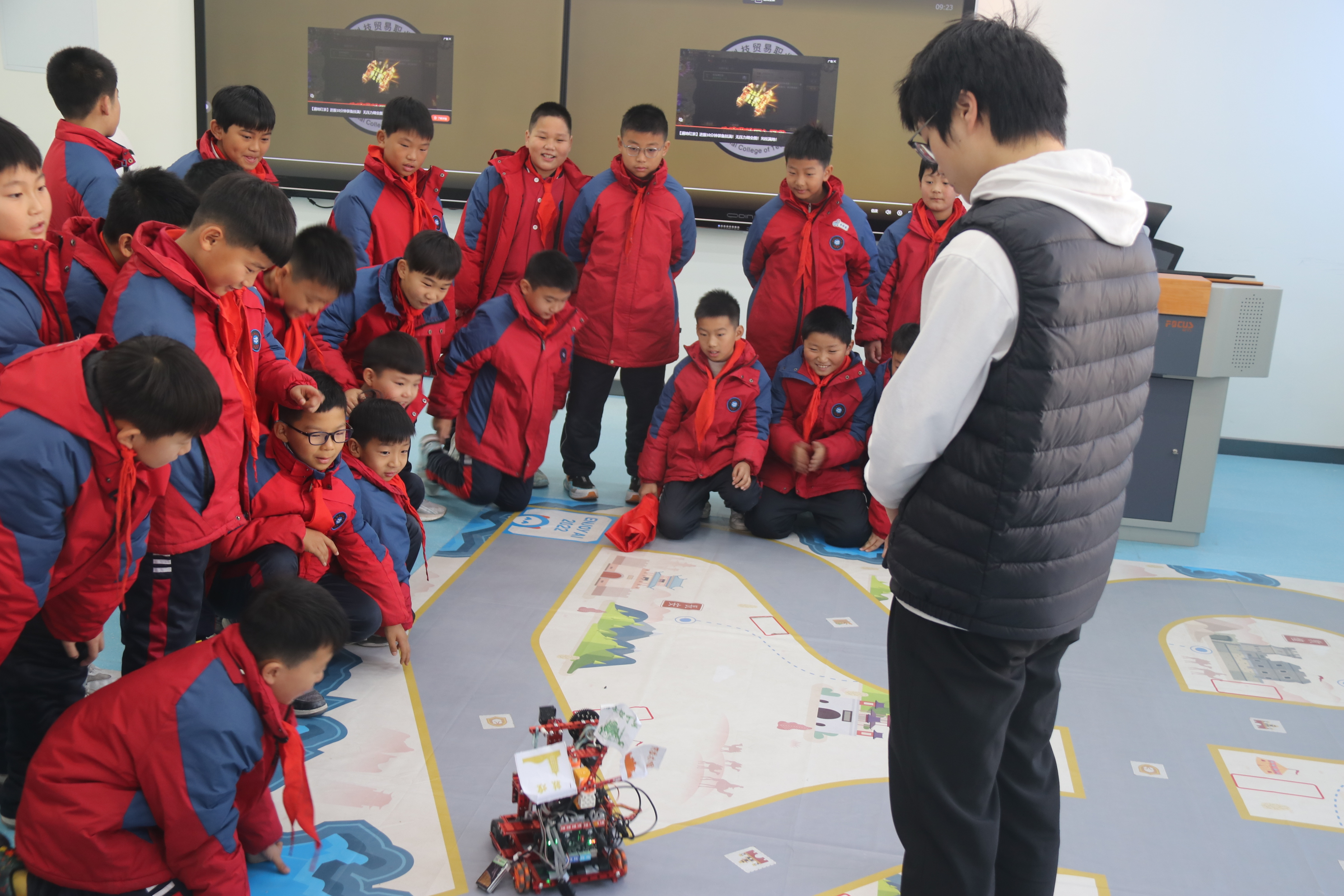 揭牌仪式后,该校员工在公司志愿者带领下开展科技社团研学活动,分别参观了人工智能教学实训中心、无人机应用中心、虚拟现实实训室等实验室,每个实验室都为参观人员安排了老员工志愿者进行知识讲解。小朋友们在参观过程中积极主动体验人工智能、VR等信息技术,现场氛围轻松有趣。