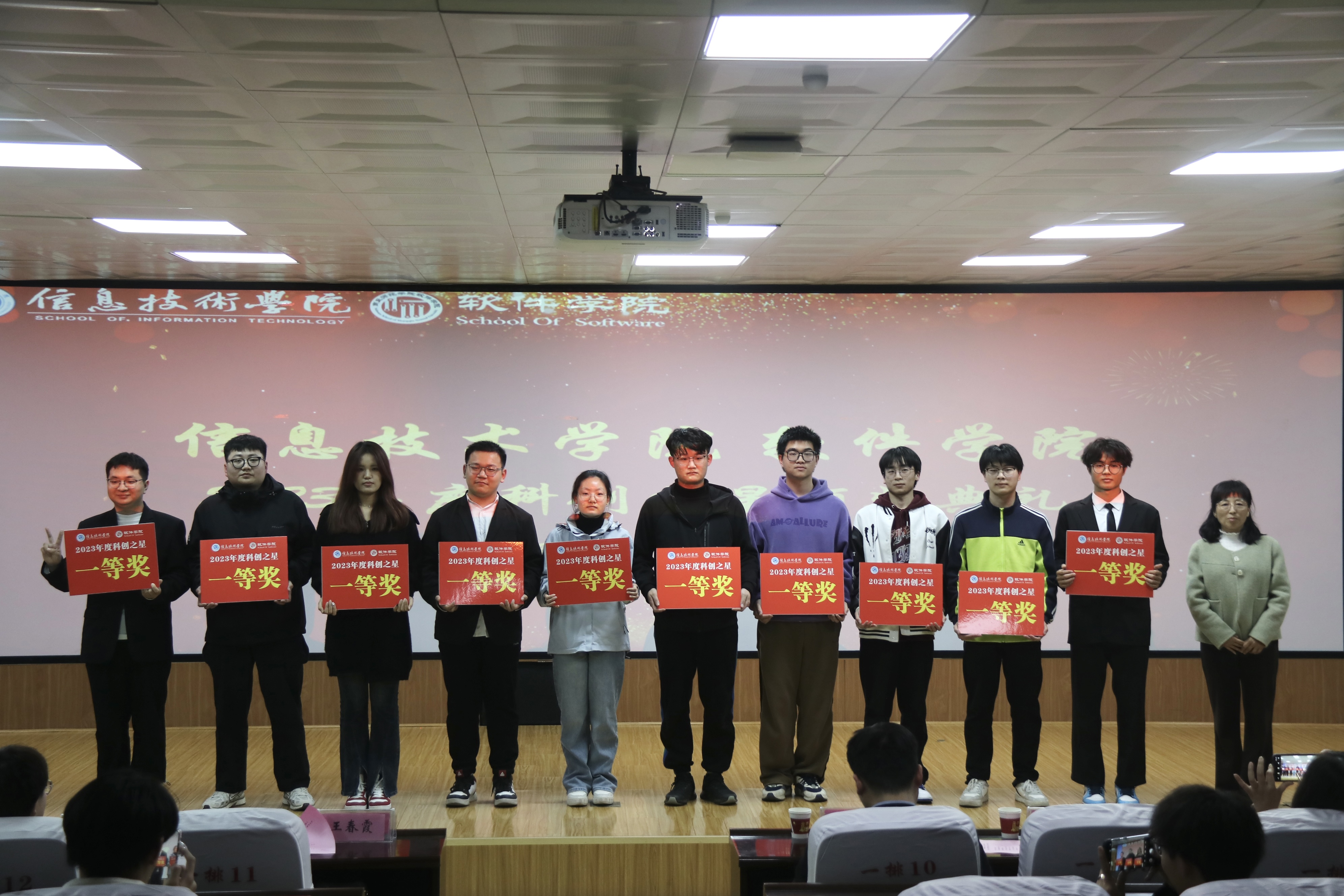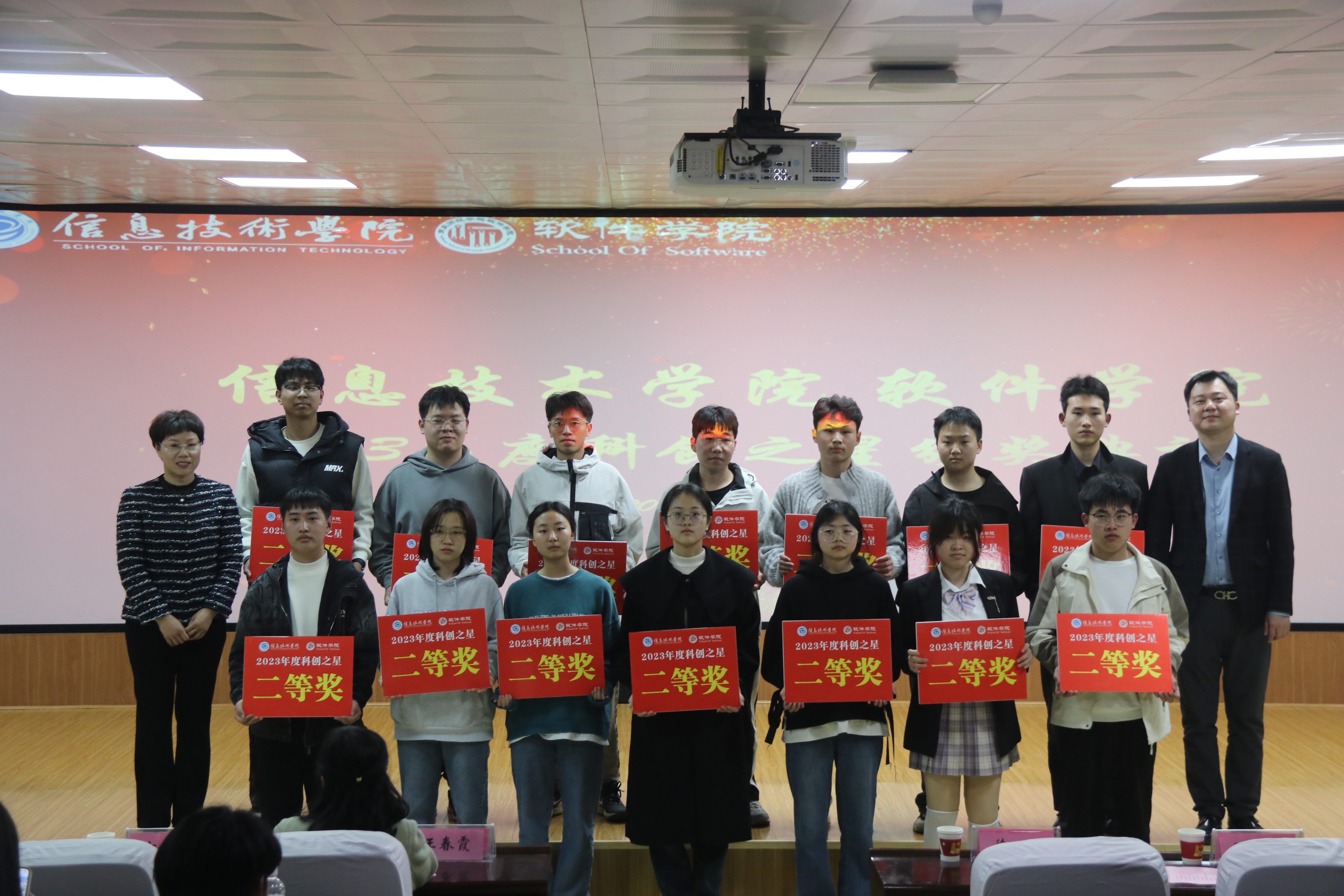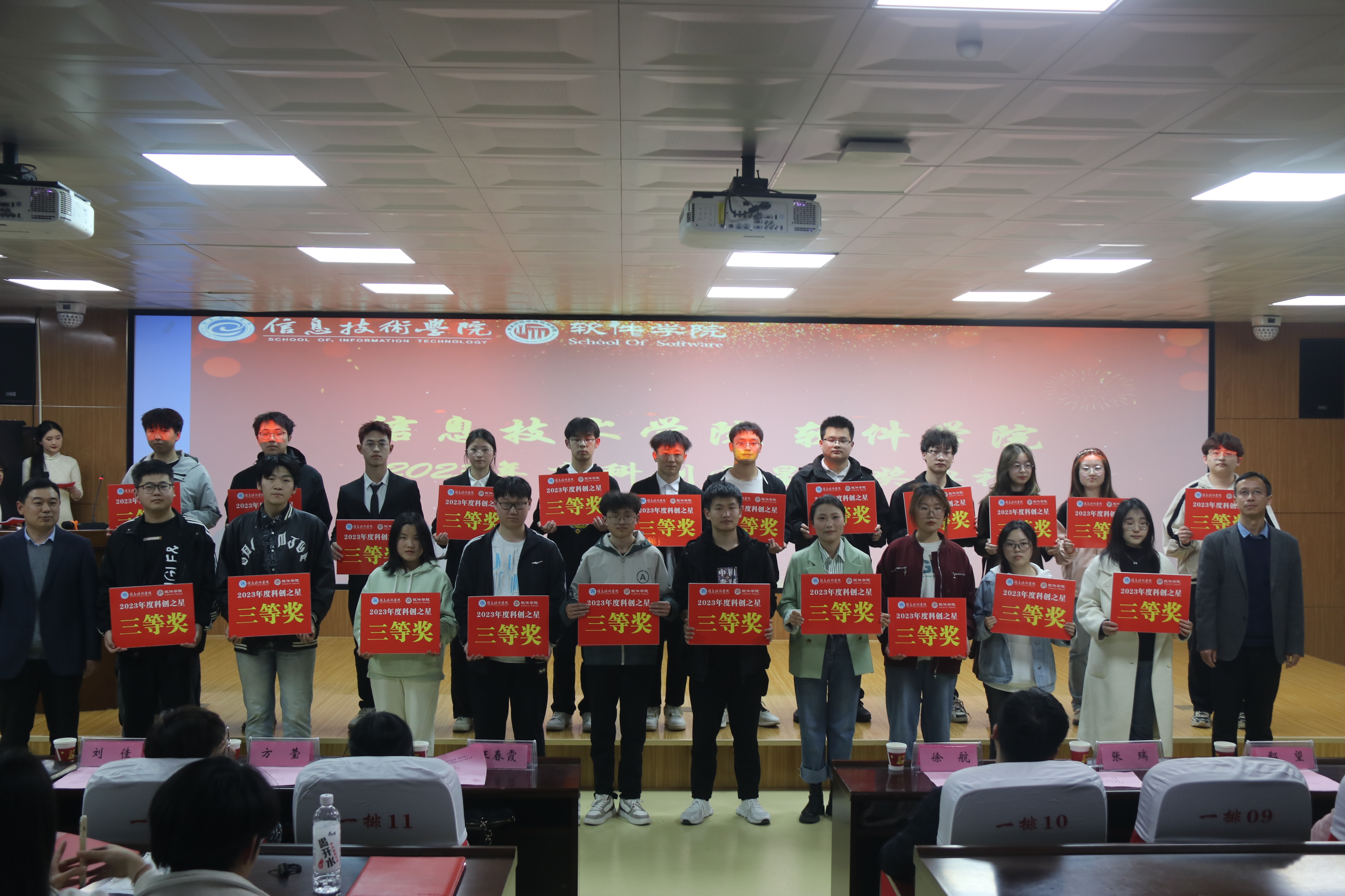 最后,由必威西汉姆联副经理刘佳宣读必威西汉姆联2023年度科创之星获奖名单,并由各位领导老师依次为获奖的同学颁奖,希望同学们再接再厉,锐意进取,勇攀科技高峰,争做时代新人。