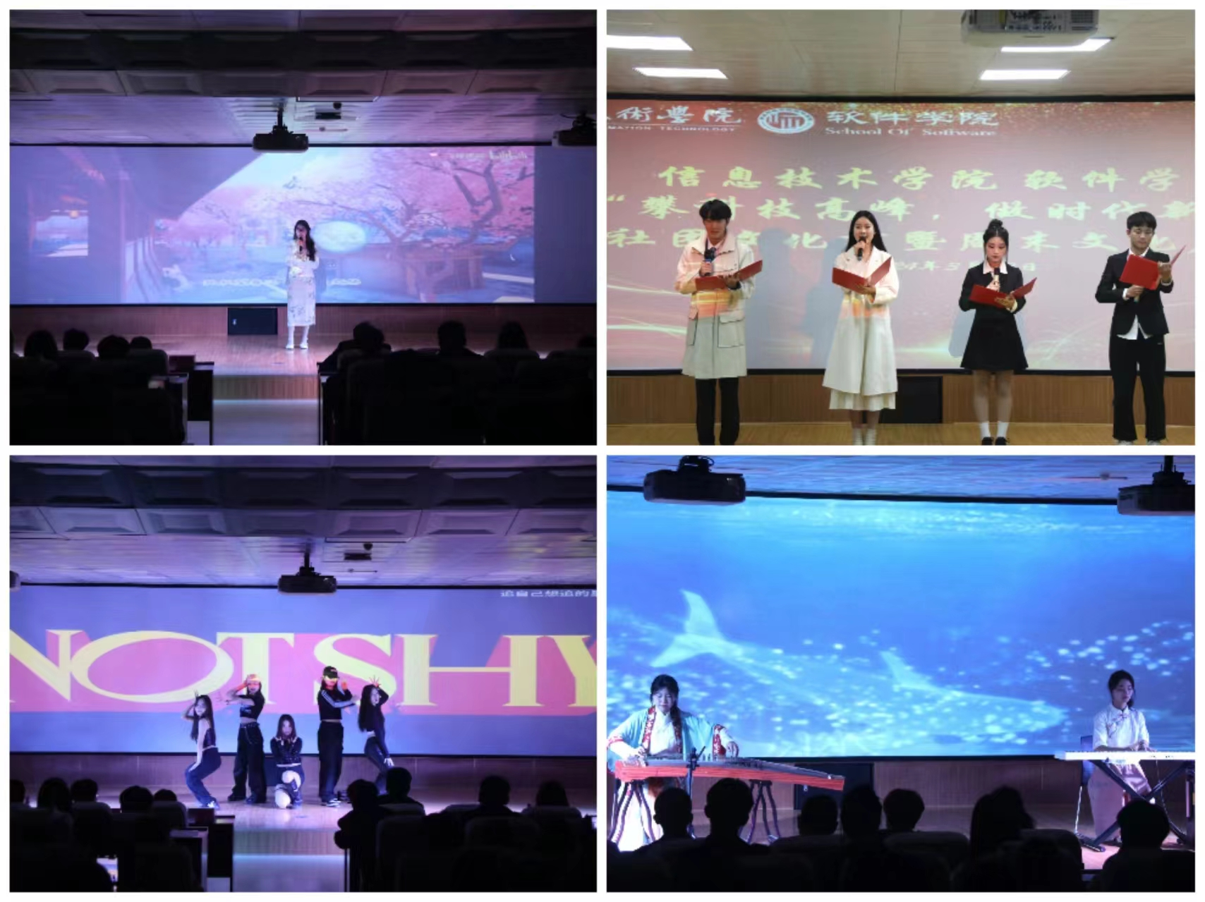 期间,同学深情献唱了古风歌曲《棠》、活力动感的《Not Shy》以及公司小橘灯宣讲团带来的主题诗朗诵《攀科技高峰,于吾辈担当》,赢得了现场师生的阵阵掌声。