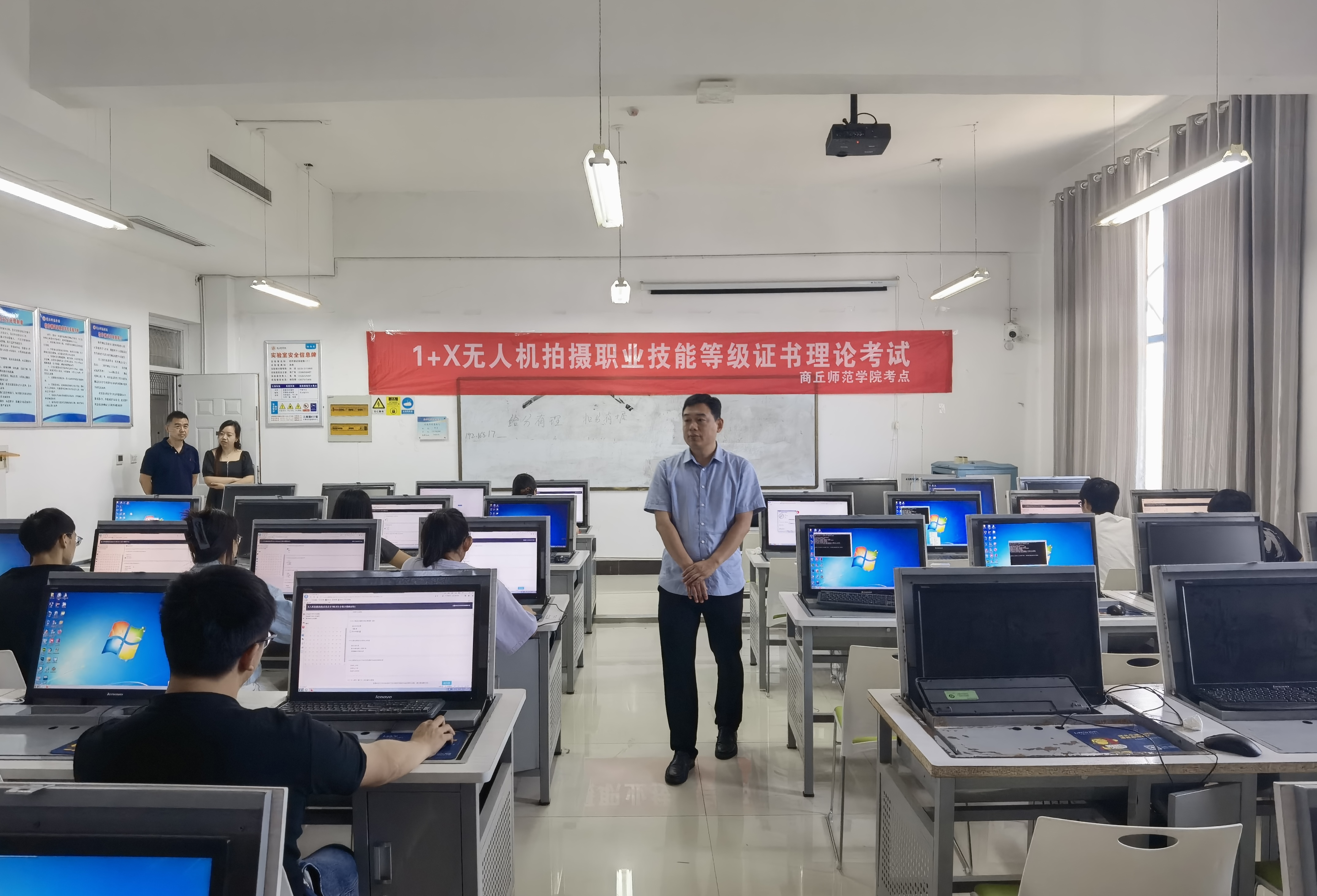 6月22日,必威西汉姆联在三商楼举行1+X无人机拍摄职业技能等级证书实操考试,本次考试由中大国飞考核评价机构担任考评员,第六期无人机培训班参训学员参加了实操考试。