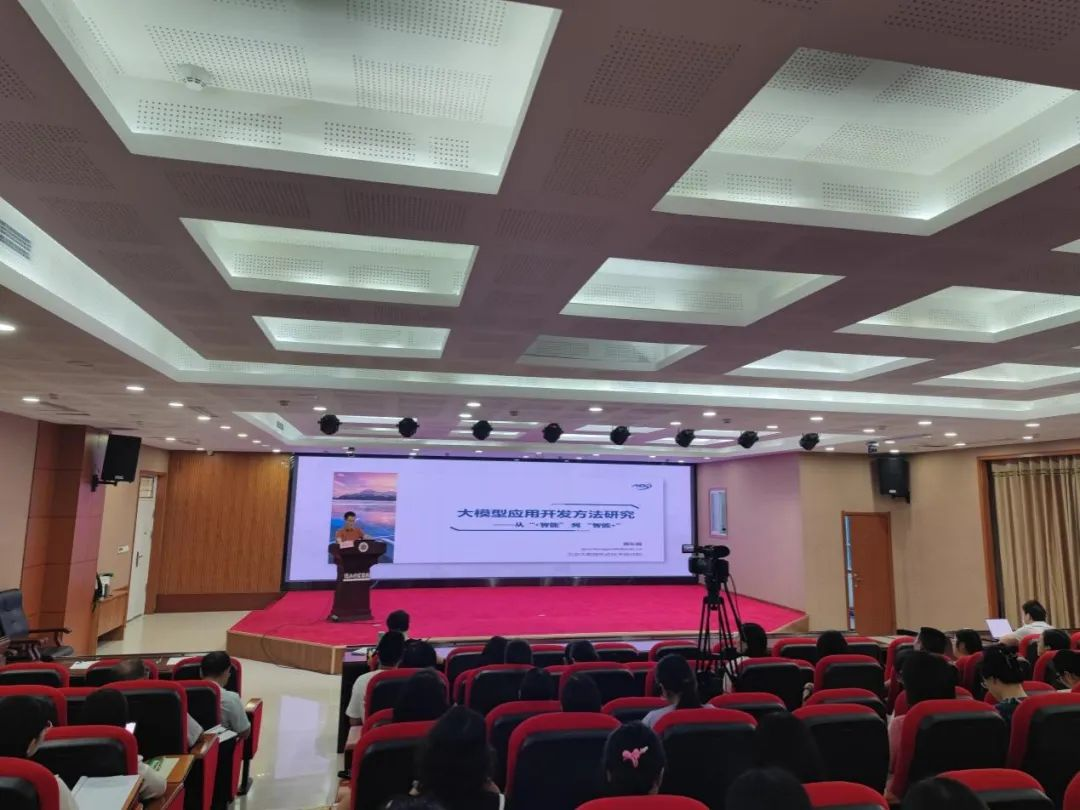 上午的研讨会以北京大数据先进技术研究院副经理郭长国博士的报告《大模型应用开发方法研究》拉开帷幕。他从AI的“+智能”到“智能+”的转型、智能+应用开发的新范式、智能+应用开发的技术与实践探索,以及对此的总结与思考等五个核心维度,进行了全面而深入的阐述,并详细讲解了如何有效利用大型模型来优化教学资源开发。