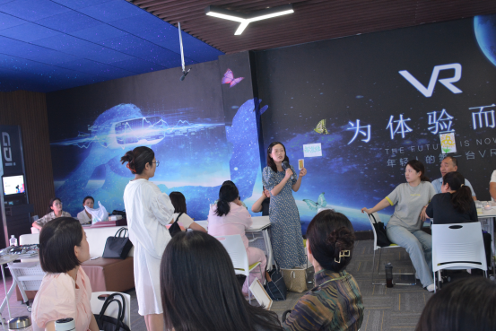 活动伊始,宋莹莹引导大家从最基础的元素入手,以简单的线条和形状勾勒出内心的图景,通过解析画作,阐释色彩心理学、构图象征等专业知识,引导教师们理解“画笔即心笔”的深层含义。