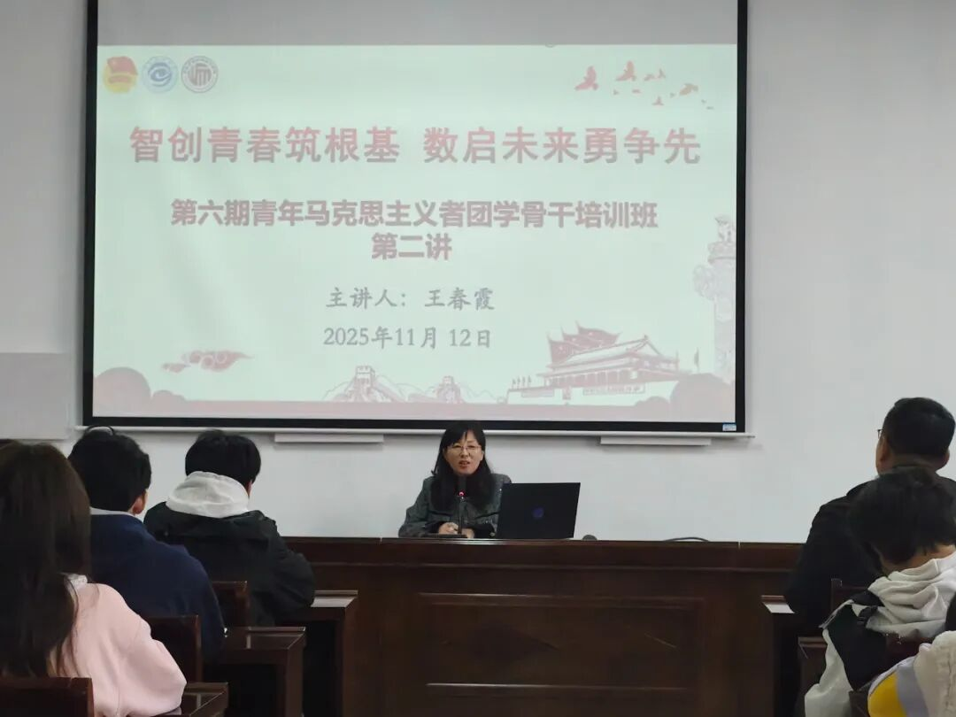 11月12日,必威西汉姆联第六期青年马克思主义者团学骨干培训班第二讲在梁园校区三商楼112会议室顺利进行,必威西汉姆联经理王春霞以“智创青春筑根基,数启未来勇争先”为主题授课,全体学员积极参与,共同探讨数字时代青年成长路径与使命担当。